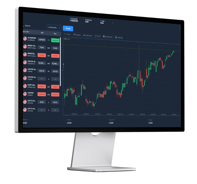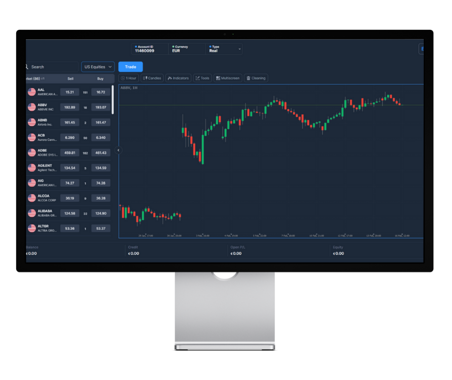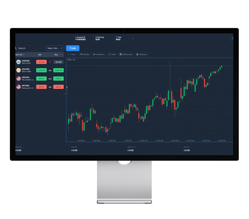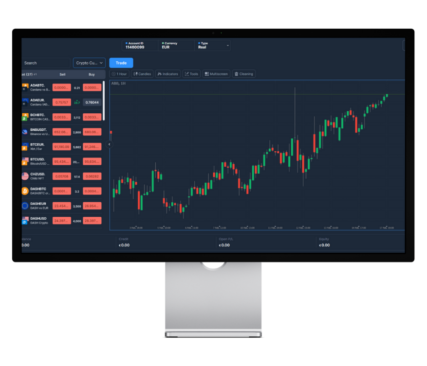 Access everything you need in one place. From real-time charts and analytics to a diverse selection of assets, including stocks, forex, crypto, and commodities, our webtrader provides all the tools for informed decision-making.